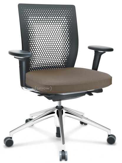 ID Air Basic dark|Plano fabric-80 coffee|Basic dark|5 star foot, polished aluminium|With 3D-armrests|Soft castors for hard floor surfaces