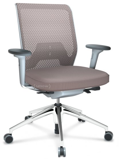 ID Mesh, FlowMotion-with tilt mechanism, with seat depth adjustment, With 2D armrests, 5 star foot, polished aluminium, Soft grey, Silk mesh seat cover, diamond mesh back, Mauve grey, Hard castors for carpets