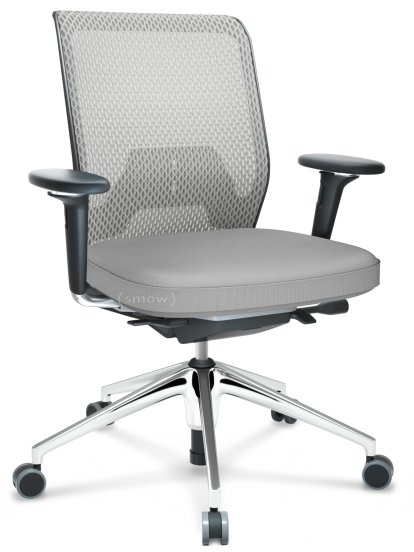 ID Mesh FlowMotion-with tilt mechanism, with seat depth adjustment|With 3D-armrests|5 star foot, polished aluminium|Basic dark|Silk mesh seat cover, diamond mesh back|Soft grey|Soft castors for hard floor surfaces