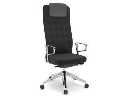 ID Trim L FlowMotion with seath depth adjustment|With polished aluminium ring armrests|Basic dark|Plano fabric nero|Hard castors for carpets