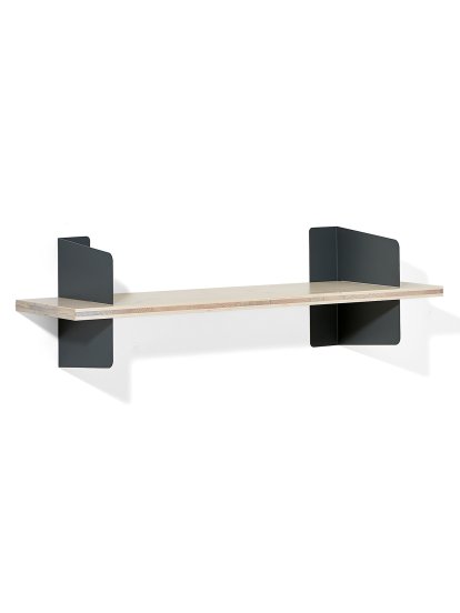 | Variants | Version 1: 2 small brackets and 1 shelf, available in 3 lengths Version 2: 2 large brackets and 2 shelves, available in 3 lengths Version 3: 1 small and 2 large brackets and 2 shelves, available in differing lengths (100 und 160 cm) Shelves available in various types of wood and brackets in a range of colours |